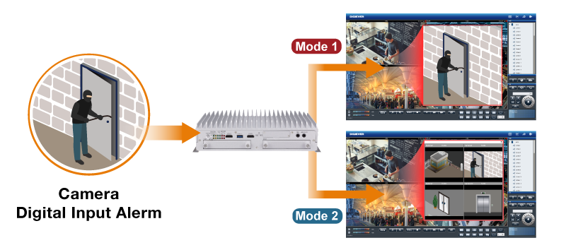 Via dual HDMI video output, DIGIEVER NVR supports 4 display modes for liveview monitoring allowing users to build the monitor room with high flexibility to satisfy diverse surveillance environments. Without installing extra PC, users can choose Dual display, Mirror display, Target display or eMap display to guard your place.