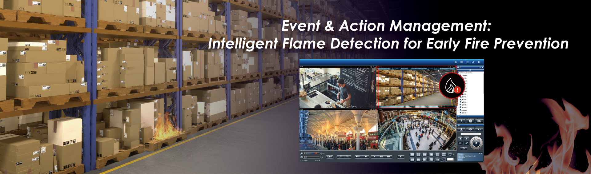 To further enhance early risk prevention, Firmware 82 introduces Intelligent Flame Detection into this event & action management system. When integrated with flame-detection-enabled cameras, the system instantly alerts operators to potential fire hazards—allowing intervention at the earliest possible stage. This proactive capability helps minimize operational risks and prevent incidents from escalating into major fire damage. With FW 82, DIGIEVER continues advancing its intelligent event architecture to support safety-critical environments where early awareness and rapid response are essential.