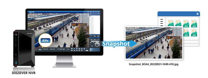 Instant playback allows users to quickly check what happened earlier while simultaneously viewing live videos on liveview page (Up to 15 minutes earlier). Users can simultaneously check previous videos and monitor live-view, by moving the window to desired position. After finding the key moment of event, users can take a snapshot or export a 5 minutes video to external USB device.