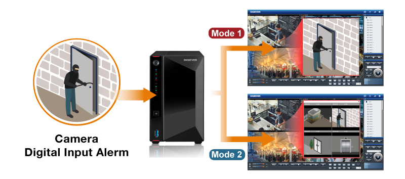 is a 2-bay Linux-embedded standalone NVR, powered by Intel high speed CPU and performs excellent network surveillance of multiple IP cameras up to 256 channels of single server. DIGIEVER NVR supports hardware decode local display of 4K Ultra HD (8MP) quality, remote browser monitoring, multi-layer dynamic E-Map, multi-megapixel recording and smart search playback. The monitoring demands can be satisfied anywhere and anytime by local display monitoring, remote browser monitoring, iOS and Android mobile monitoring.