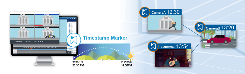 Users can check camera and time information via OSD (on-screen display). When users take the snapshot, the OSD will be shown on the snapshot.