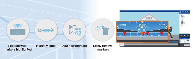 Instant playback allows users to quickly check what happened earlier while simultaneously viewing live videos on liveview page (Up to 15 minutes earlier). Users can simultaneously check previous videos and monitor live-view, by moving the window to desired position. After finding the key moment of event, users can take a snapshot or export a 5 minutes video to external USB device.