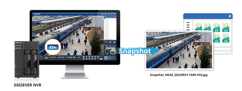 Instant playback allows users to quickly check what happened earlier while simultaneously viewing live videos on liveview page (Up to 15 minutes earlier). Users can simultaneously check previous videos and monitor live-view, by moving the window to desired position. After finding the key moment of event, users can take a snapshot or export a 5 minutes video to external USB device.