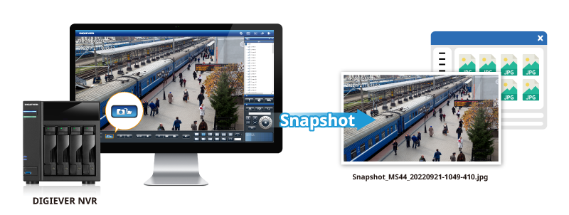 Instant playback allows users to quickly check what happened earlier while simultaneously viewing live videos on liveview page (Up to 15 minutes earlier). Users can simultaneously check previous videos and monitor live-view, by moving the window to desired position. After finding the key moment of event, users can take a snapshot or export a 5 minutes video to external USB device.