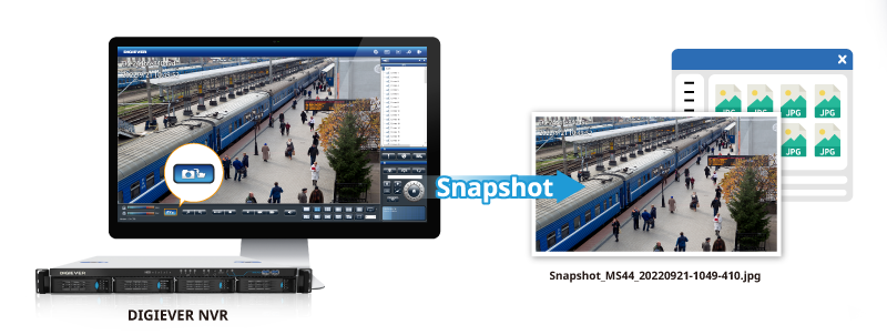 Instant playback allows users to quickly check what happened earlier while simultaneously viewing live videos on liveview page (Up to 15 minutes earlier). Users can simultaneously check previous videos and monitor live-view, by moving the window to desired position. After finding the key moment of event, users can take a snapshot or export a 5 minutes video to external USB device.