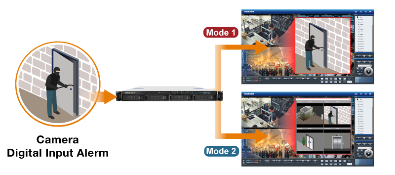 Via dual HDMI video output, DIGIEVER NVR supports 4 display modes for liveview monitoring allowing users to build the monitor room with high flexibility to satisfy diverse surveillance environments. Without installing extra PC, users can choose Dual display, Mirror display, Target display or eMap display to guard your place.