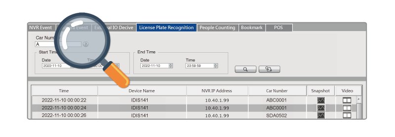 DIGIEVER NVR features data search allowing users to enter license plate number to quickly find its record, snapshot and video clips.  Users can input any related digit for fuzzy search if partial car number is unknown.
