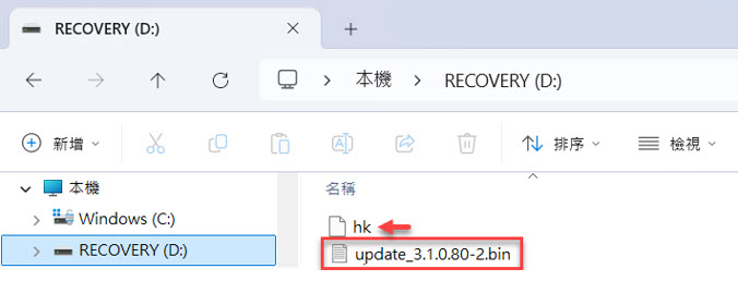2. Unzip the FW file and copy FW file to the USB device that contains hk file.