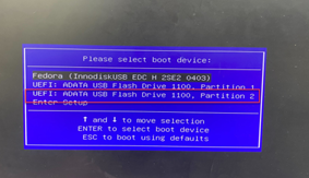 2. Power on the NVR and keep pressing "F12".  Enter "nvrbios".  There will be 2 partitions under your USB device.  Select "Partition 2".