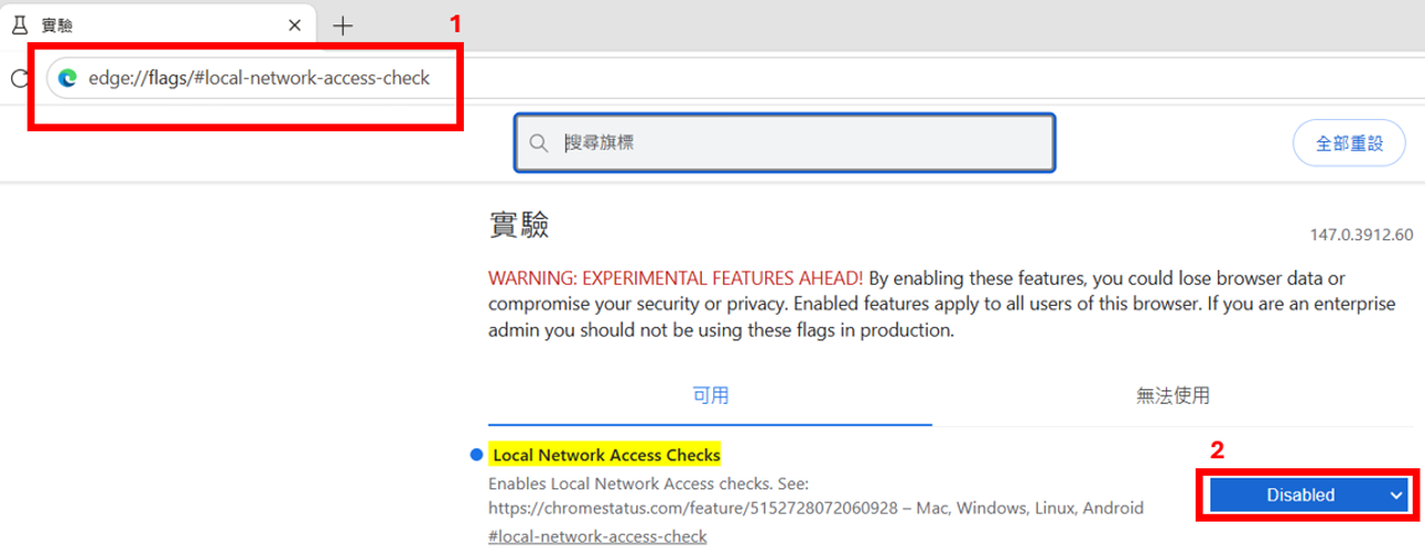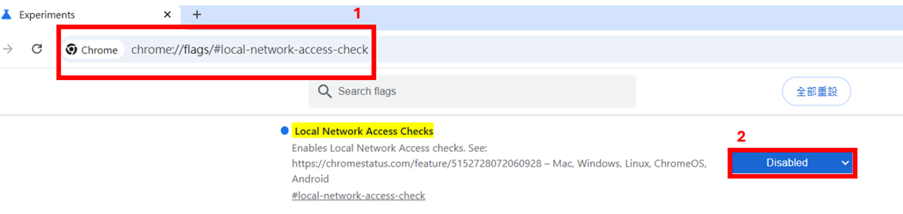 [Method1] Disable “Local Network Access Checks”on Chrome and Edge browser