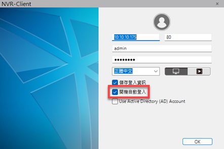 已啟用NVR-Client「開機自動登入」功能,然而電腦重開機仍未自動登入